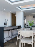 Once inside, the home reveals its character, old and new merge together along lines of steel structure coated in rich black intumescent paint. Dual crittal doors open to the classical lounge which frames a heritage fireplace.
