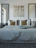 A dramatic feature stair separates the public areas from the luxury bedrooms which come alive with rich warm timbers, intimate design features and a his and hers master suite with a waterfall shower. The entire property is illuminated by natural light, staged with plants, plenty of sleek storage and a dressed balcony.